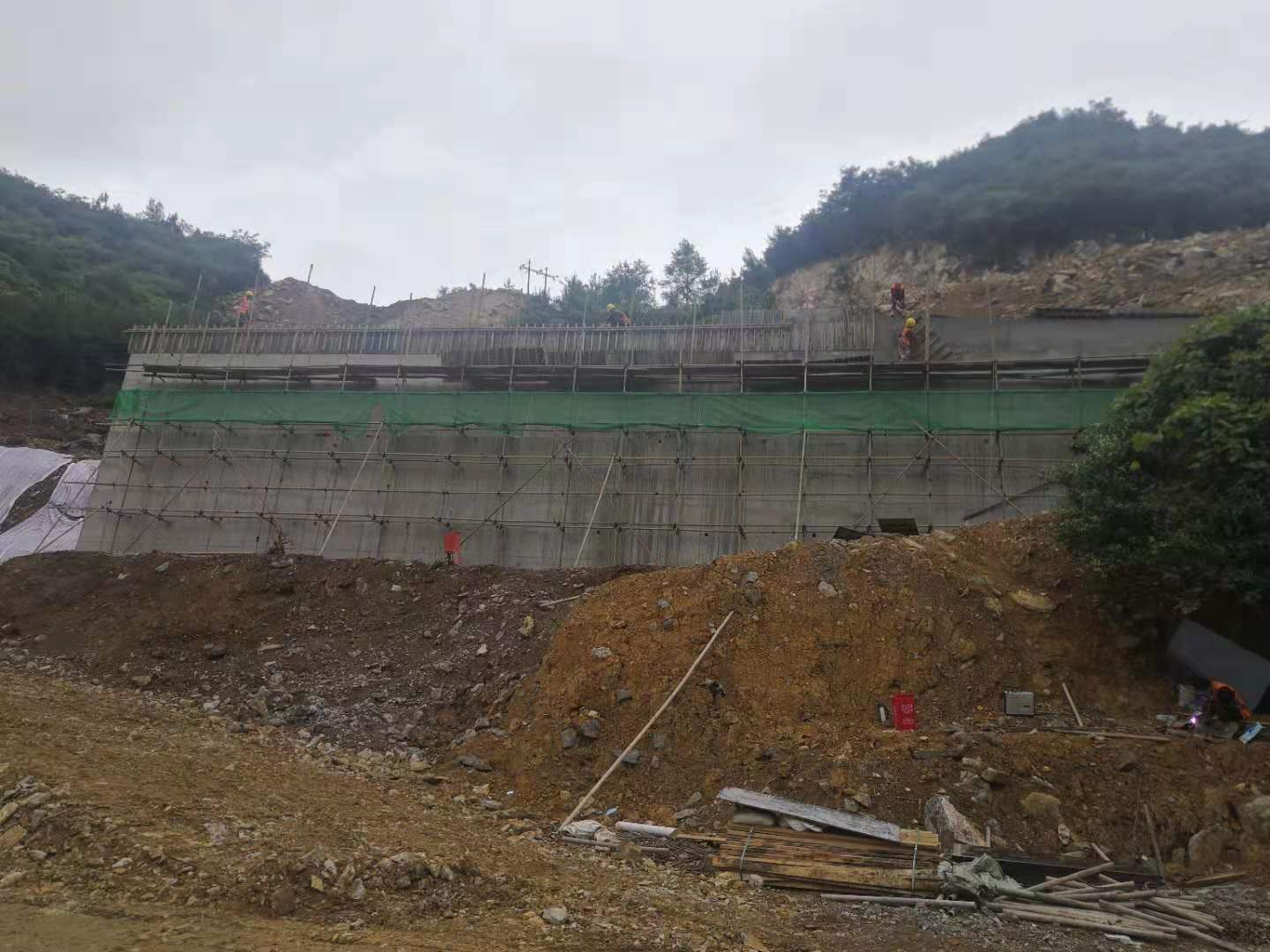 3、K1+430.0 ~K1+535.0段挡土墙累计完成60%;K1+260 ~K1+290段右侧挡土墙累计完成90%;