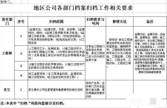 3、工程施工资料主要由工程部监督控制,施工单位进行具体编制、收集、整理,并在每项分部工程完成后,一个月内统一移交工程部资料室。