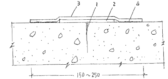 1—裂缝 2—油毡或塑料隔离层;3—聚丁橡胶密封条;4—粘结剂