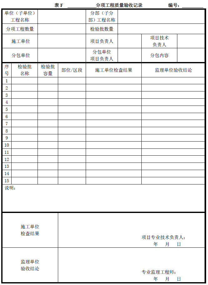 分项工程质量验收记录可按《建筑工程施工质量验收统一标准》附录F填写。