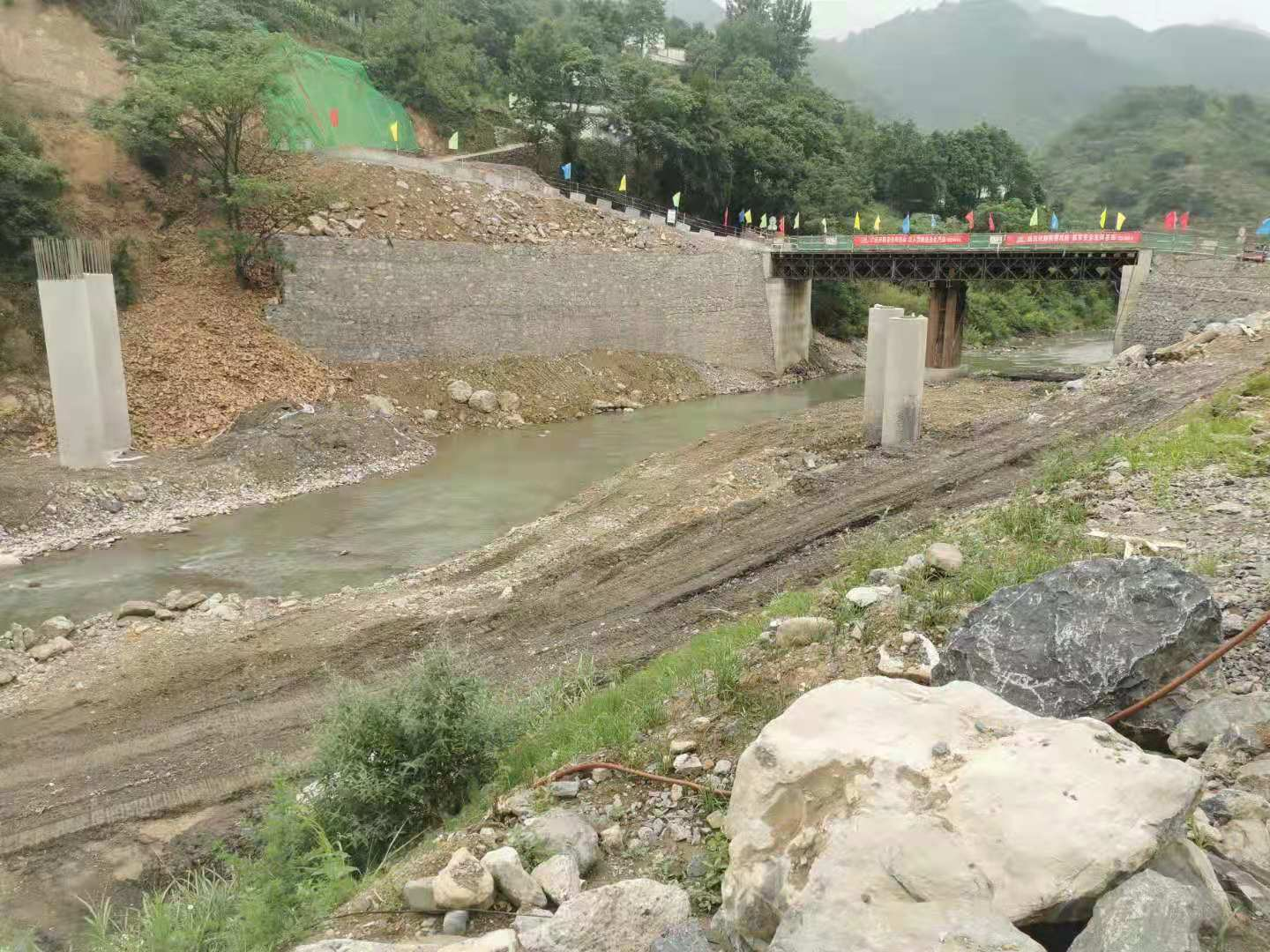 5、完成1#施工便道100%;2#施工便道2km,硬化500m;完成1#、2#、3#钢便桥;完成项目部营地建设。