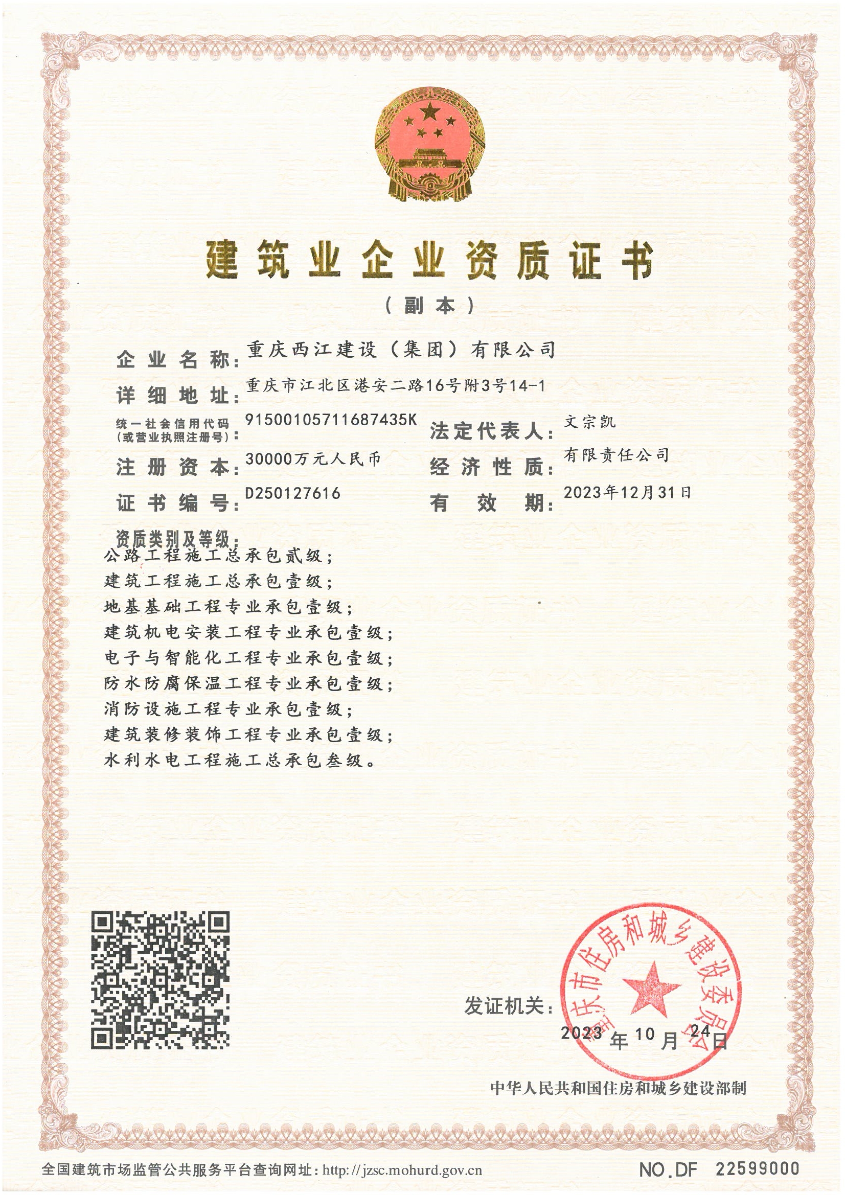 公路工程施工总承包壹级;地基基础工程专业承包壹级;