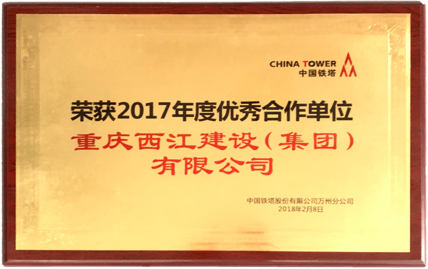 荣获2017年度优秀合作单位(中国铁搭颁发)