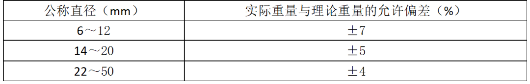 钢筋实际重量与理论重量的允许偏差应符合下表规定: