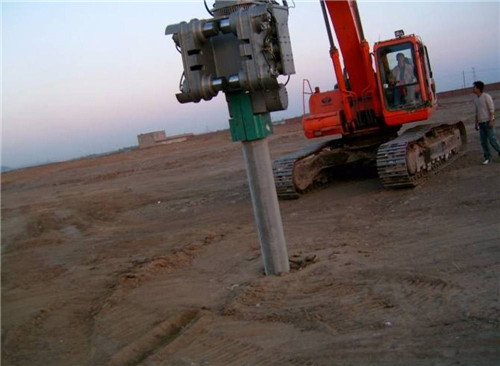 1、桩机准备好以后需要保持桩架的平稳,桩帽需要和桩顶牢牢锁紧,连成一个整体,这样才会更加牢固。打桩的时候,需要随时观察桩身的下沉变化,保证桩身、桩锤和桩帽都在同一中心线上,要避免锤击的时候打偏。起初桩身入土比较快,贯入力度比较大,需要随时调整激振力,保证匀速缓慢下沉。