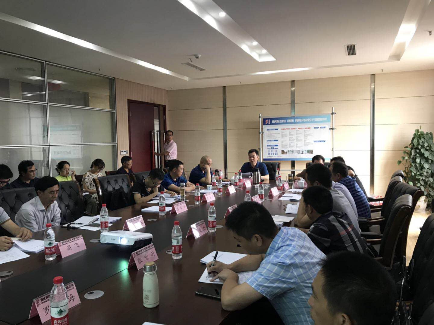重庆西江建设(集团)有限公司2018年度工程管理工作会议于2018年6月8日上午9:30在集团公司会议室圆满召开。集团公司二级班子,各分公司、项目部负责人、财务负责人和安全负责人参加本次会议;集团公司董事长唐爱群、总经理文定辉出席本次会议。会议由集团公司总经理文定辉主持。此次会议旨在总结2018年度工程管理工作经验、分析工程管理工作中存在的问题,学习规范工程现场的财务管理工作原则及安全管理工作原则,明确我公司工程管理工作需要达到的目标。