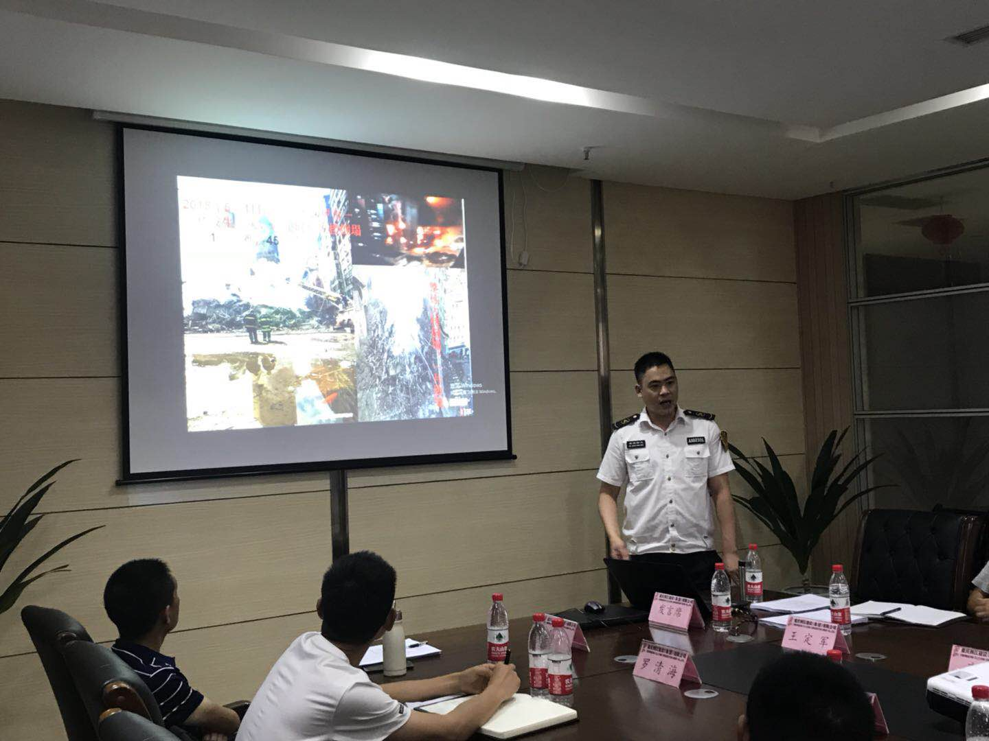 重庆市消防安全宣传中心张老师播放近期全国发生的重大火灾事故资料,解说发生事故的原因。对全体参会人员起到了警示的作用。