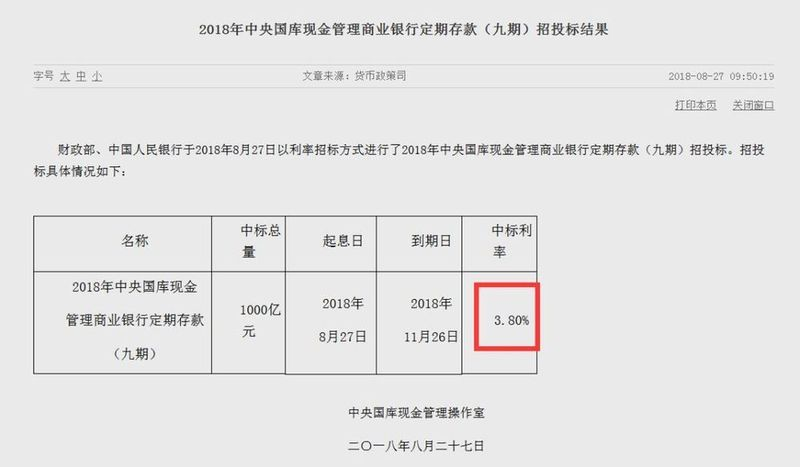 所谓“中央国库现金管理商业银行定期存款”,是央行把国库里的钱,交给商业银行保存,这个过程一般会通过招标方式进行。